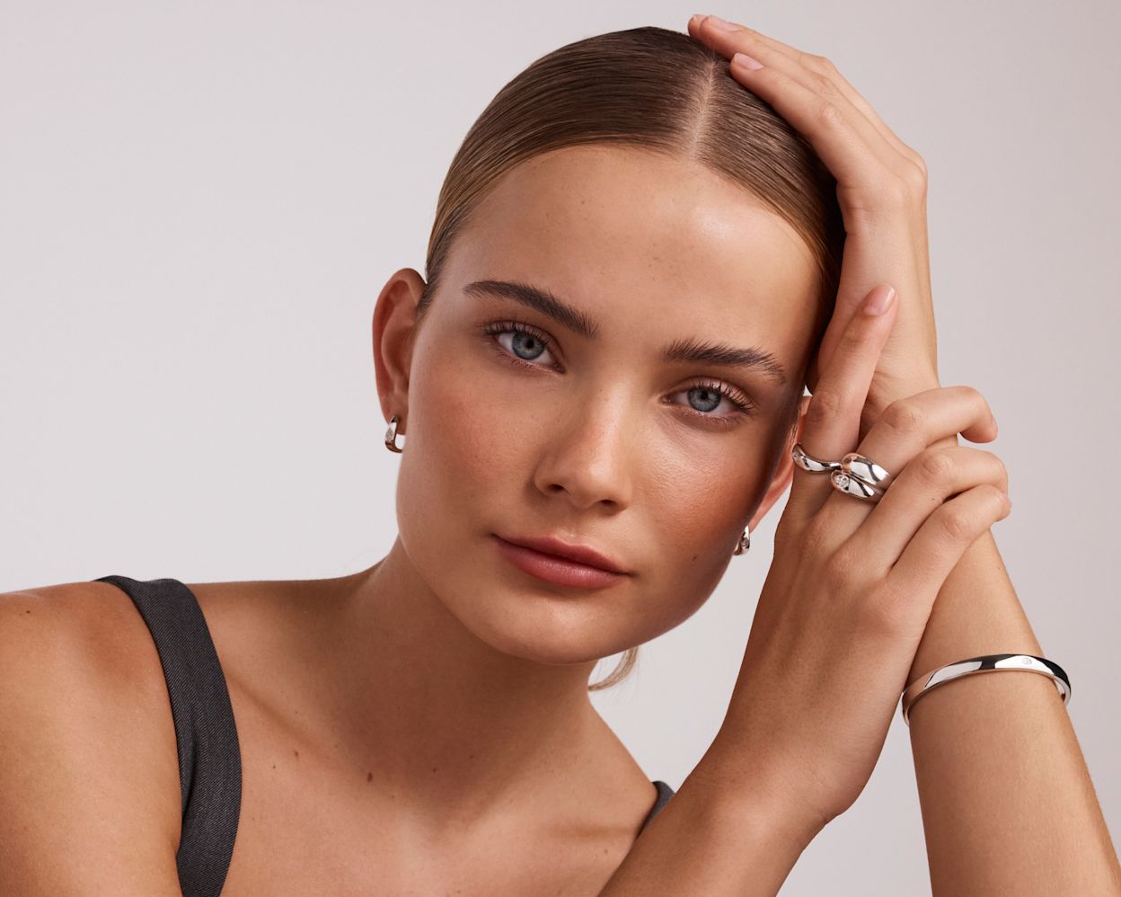 Our new Bold Silver LAB. Rings, Earrings and Bangle are perfect to take a casual linen set or summer dress from day-to-night; while our Solid Round Bangle and 25mm Hoop Earrings will be the hardest working pieces in your suitcase, making your staple holiday outfits feel fresh, polished and on-trend.