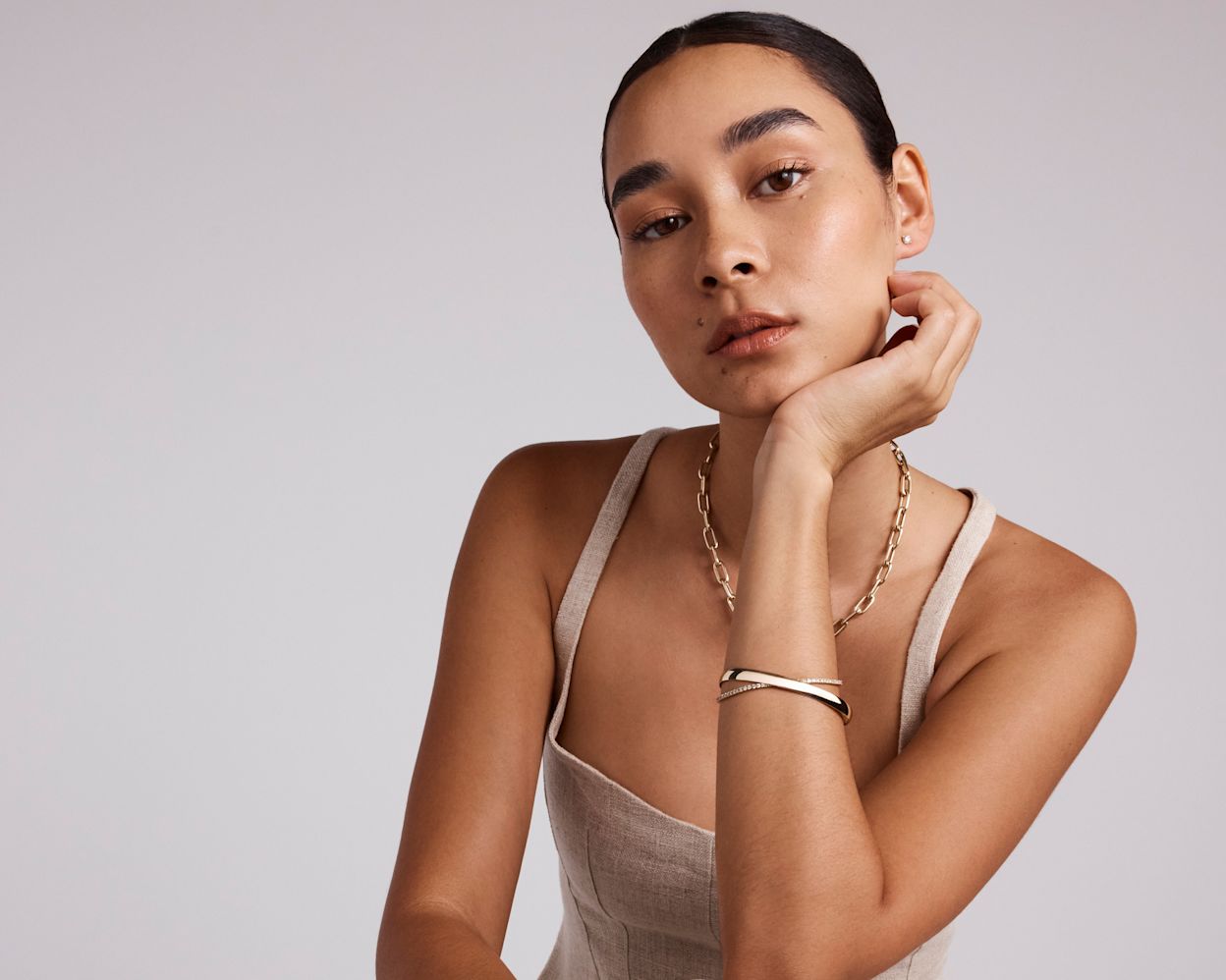 Channel the luxurious ease of summer holidays and ensure you feel effortlessly put-together each day, in our warm toned yellow gold and rose gold picks, from contemporary hoops and bold dome rings to classic bangles.