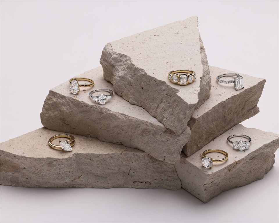 Customise your diamond shape, caratage, ring setting, precious metal type and size to create a ring that reflects your love story.