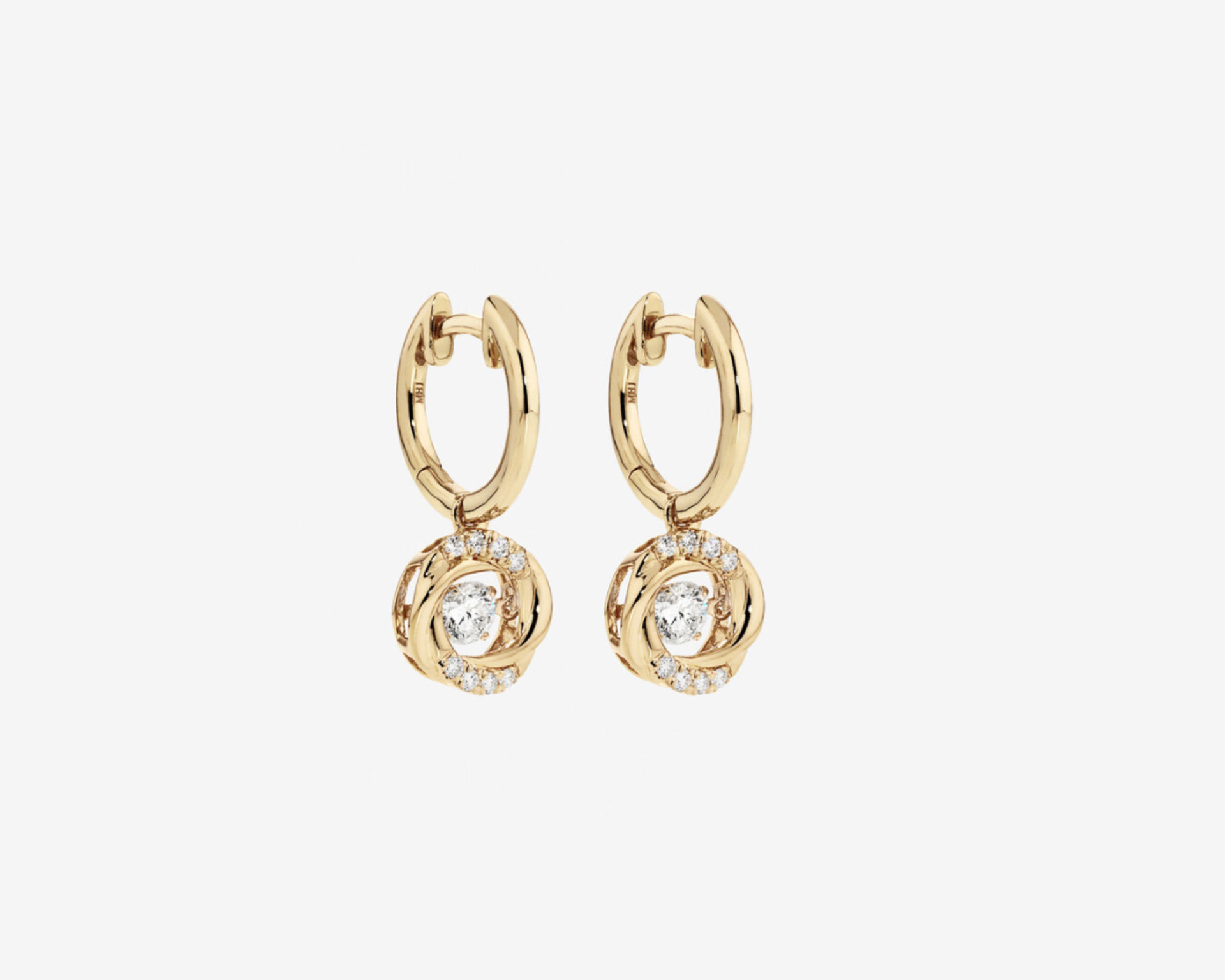 Une lumière qui perdure. Ornée de diamants de laboratoire E VVS suspendus pour bouger avec vous et capter la lumière à chaque mouvement. Confectionnée en or 10 kt ou en argent sterling, chaque pièce met en valeur une pierre centrale au style moderne. Conçue pour bouger doucement, faite pour rester avec vous.