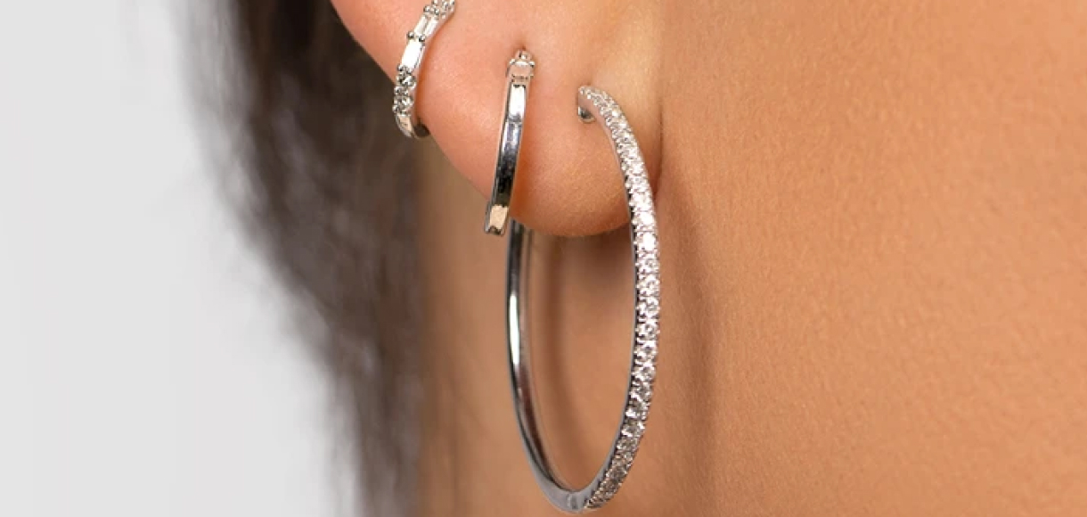 Our most-loved styles of diamond earrings include diamond solitaire earrings, diamond earrings in gold, mini hoops, diamond studs, drop earrings adorned with diamonds, and diamond huggies earrings.